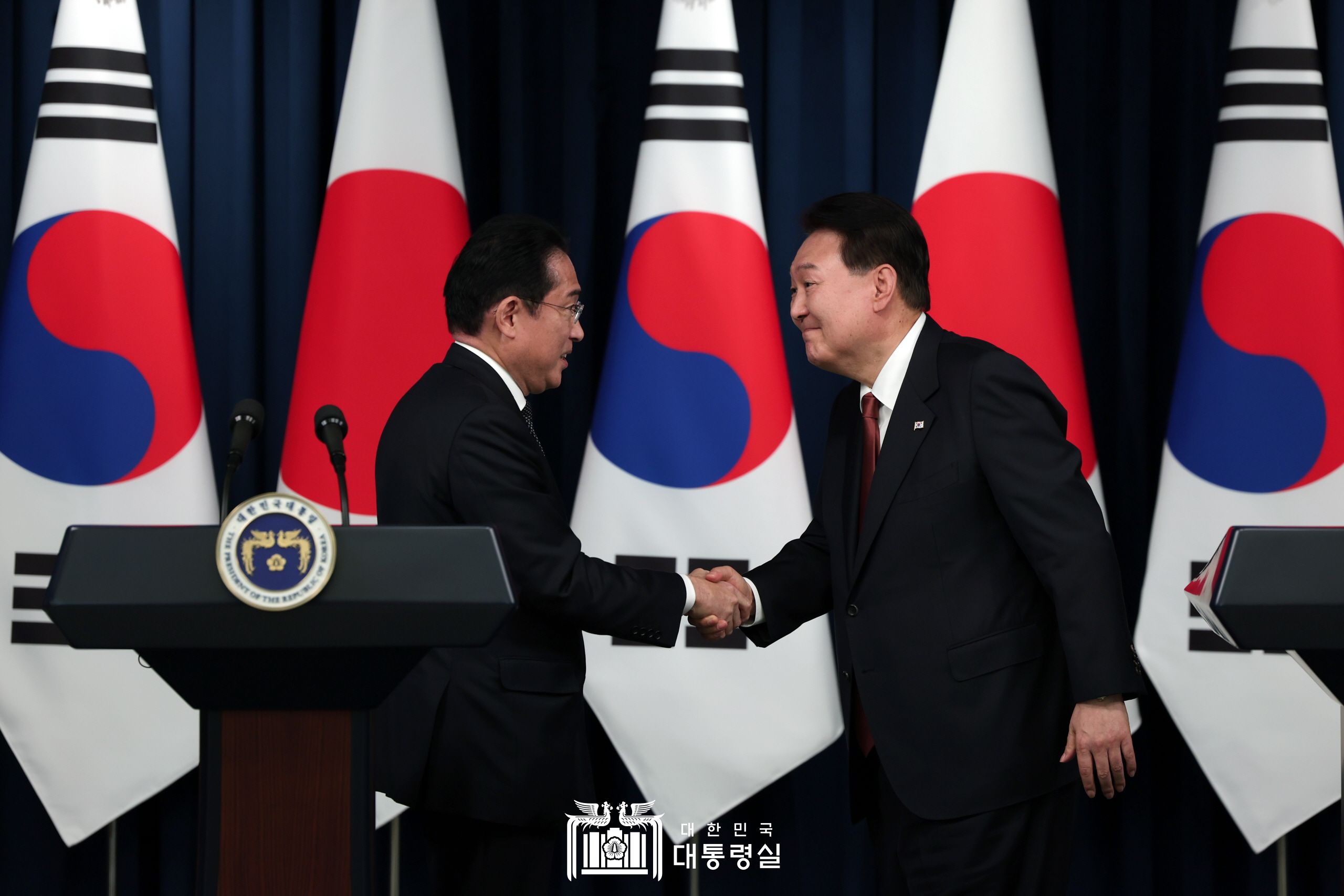 윤석열 대통령은 7일 용산 대통령실 청사에서 기시다 후미오 일본 총리와의 확대 정상회담 모두발언을 통해 “한일 협력과 공조는 양국의 공동이익은 물론, 세계 평화와 번영을 위해서도 꼭 필요하다”고 강조했다. 또 기시다 총리의 방한을 두고 “한일 관계도 본격적인 개선이 뚜렷하게 나타나고 있다”며 지난 4월 수단에서 일본인이 철수하는 과정 중 우리 측이 제공한 협조가 곧 달라진 한일관계를 보여주는 상징적인 장면이었다고 전했다. 특히 과거사를 정리하지 않으면 미래 협력도 없다는 기존 입장에 대해 “벗어나야 한다”고 말하며, 과거가 아닌 한일 양국의 미래 협력으로 나아가야 한다고 밝혔다.