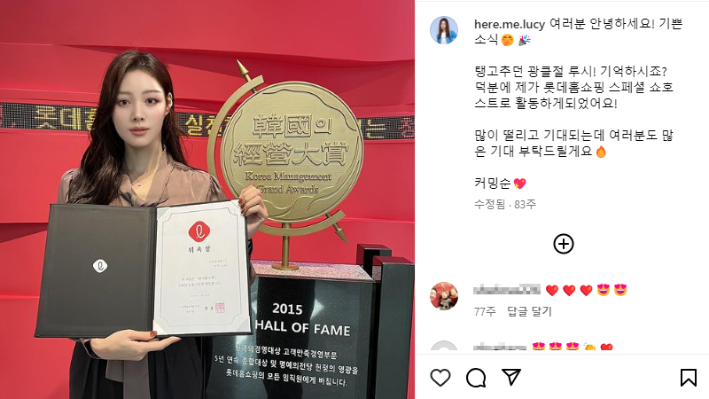 루시의 성공은 11만 명이 넘는 인스타그램 팔로워 수에서 확인할 수 있다. 루시는 이러한 인기에 힘입어 데뷔 이후 꾸준히 홍보 제품을 매진시키는 기록을 세우고 있다. 작년 12월에 진행된 럭셔리 패션 브랜드 미우미우의 가방과 카드케이스의 경우 라이브 커머스 세션 시작 25분 만에 매진됐으며, 비비안웨스트우드 가방과 미니 드라이어도 각각 30분, 40분 만에 매진됐다.
