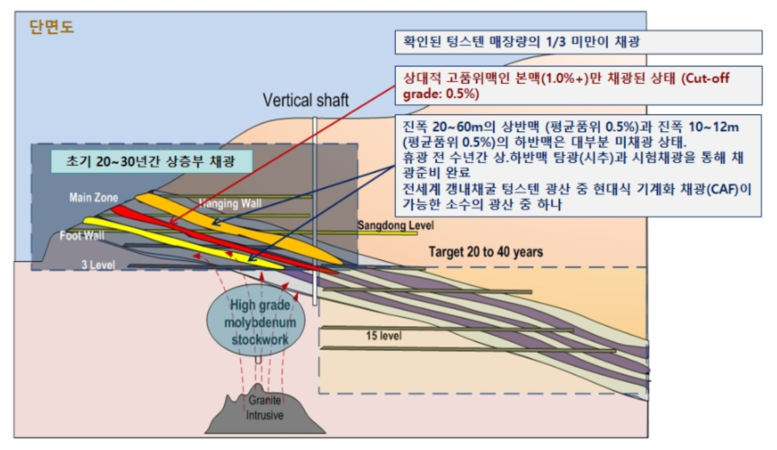 상동광산은 1916년에 처음 설립돼 60년대와 70년대에 전성기를 누렸다. 국영기업인 대한중석이 상동광산에서 채굴한 텅스텐은 한때 전체 한국 수출의 70%를 담당하며 전 세계 텅스텐 생산량의 17%를 차지하기도 했다. 그러나 1980년대 중국이 시장에 텅스텐을 쏟아내기 시작하면서 텅스텐 공급량이 급증, 가격이 폭락했다. 경쟁력을 잃은 상동광산은 결국 1992년 생산이 중단됐다. 대한중석이 보유하고 있던 광산 운영권도 2015년 알몬티로 넘어갔다.