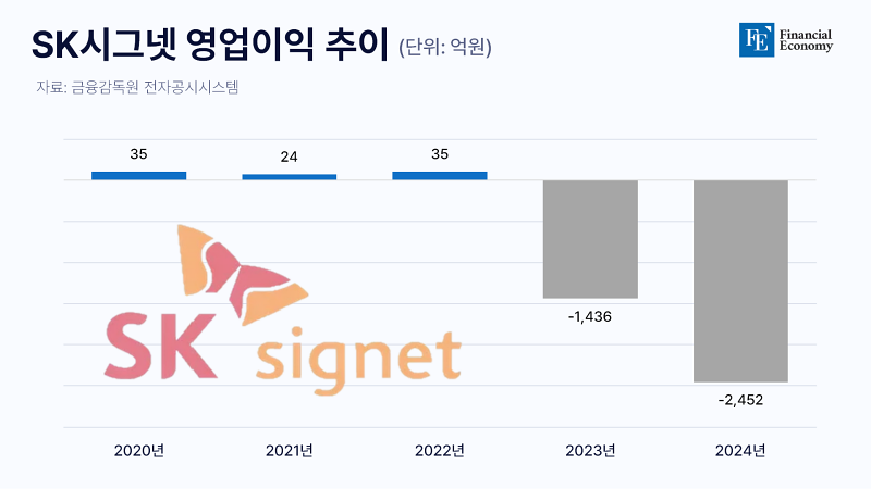 23일 금융감독원 전자공시시스템에 따르면 SK시그넷의 지난해 매출은 838억원으로 2023년보다 65% 증가했다. 다만 같은 기간 영업적자도 2,452억원으로 전년 대비 63% 늘었다. 불과 2년 전인 2022년 매출 1,623억원, 영업이익 35억원을 기록했던 점을 고려하면, 반등이 절실하다는 게 업계의 주된 평가다.