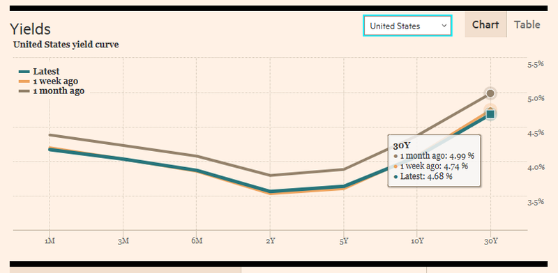미국의 국채금리 역시 기준금리 인하 기대 속에 하향곡선을 그리고 있다. 벤치마크 10년물 국채금리는 지난 11일 뉴욕 채권시장에서 장중 3.994%까지 내려 4월 '관세 쇼크' 이후 최저치를 경신했으며, 현재는 4.07%를 기록 중이다. 2년물은 3.5%대에서 소폭 등락을 반복 중이며, 30년물은 지난 11일 4.65%로 2bp 넘게 떨어진 뒤 지금은 4.68% 선을 유지 중이다. 채권의 가격과 금리는 반대로 움직인다. 금리가 하락하면 그만큼 채권 가격이 상승한다는 의미다.