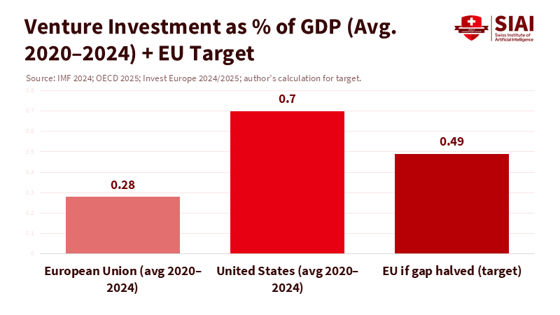 이 부분도 구체적으로 살펴보자. 지난 10년간 유럽의 벤처 투자는 GDP의 0.2~0.3%에 머문 반면 미국은 평균이 0.7%에 이른다. 시장 파편화 때문에 투자자들이 규모를 확보하기도 어려워, 가능성 있는 기업들이 성장을 멈추거나 해외로 이전하는 일도 많았다.
