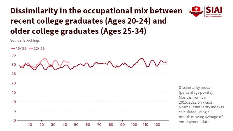 따라서 전체적인 실업률에 집착하지 말고 산업 및 기업 규모별 AI 도입 양상을 세부적으로 살펴보는 것이 필요하다. 특히 가장 큰 위험에 놓인 진입 단계 일자리 통계에 더 큰 관심을 가져야 한다. 가장 먼저 보조금과 수습생 제도는 인간의 기술에 AI 훈련을 결합해 기업이 원하는 역량을 갖추도록 하는 데 집중할 필요가 있다.
