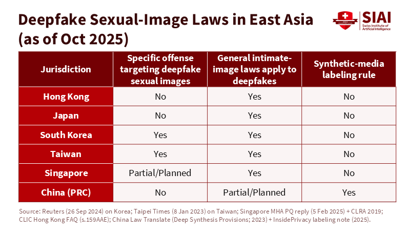 2025년 10월 기준 동아시아 지역의 딥페이크 성적 이미지 관련 법제 현황