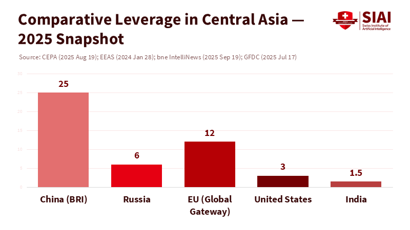 2025년 상반기, 중국의 일대일로(BRI) 투자는 571억 달러(약 79조2,000억원), 이 중 250억 달러(약 34조7,000억원)가 중앙아시아에 투입됐다. 이는 단순한 투자 확대가 아니라 지역 질서가 중국 중심으로 재편되고 있음을 보여준다. 중국은 자본으로, 러시아는 외교 채널로, 미국과 유럽연합(EU)은 제재와 기준으로 영향력을 강화하고 있다. 주요 행위국이 각자의 이해에 따라 움직이면서, 인도가 개입할 여지는 점점 줄어들고 있다.