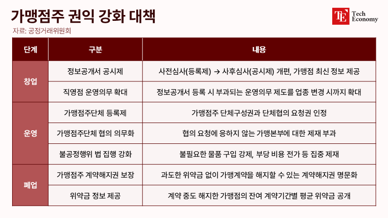 공정거래위원회가 가맹점주 권익을 강화하기 위한 종합 대책을 발표했다.